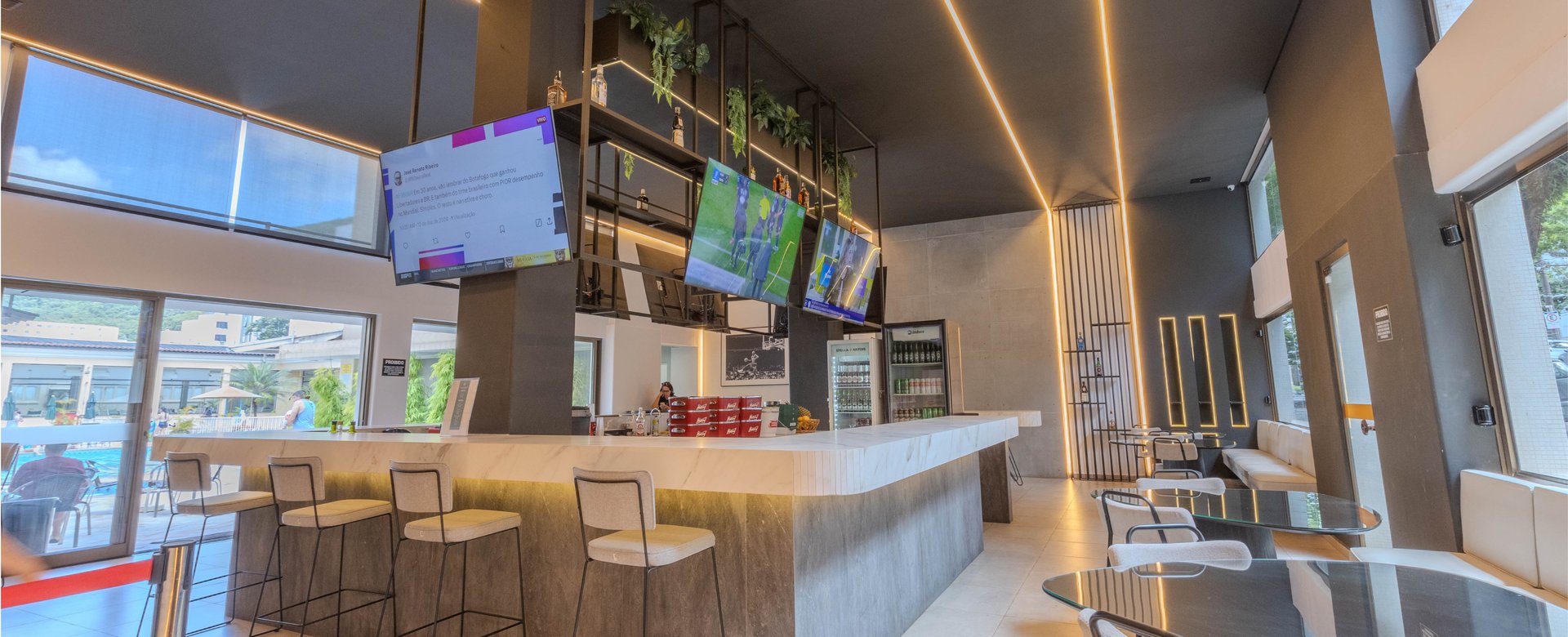 O Sports Bar oferece um ambiente aconchegante e descontraído, perfeito para relaxar e curtir bons momentos.