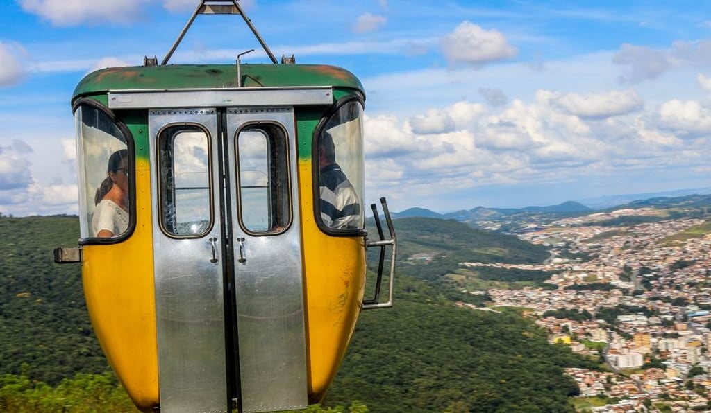 Também é possível subir de carro, com acesso fácil até o alto da serra, onde fica o mercado e o famoso Cristo Redentor de Poços de Caldas, um dos cartões-postais mais conhecidos da região.